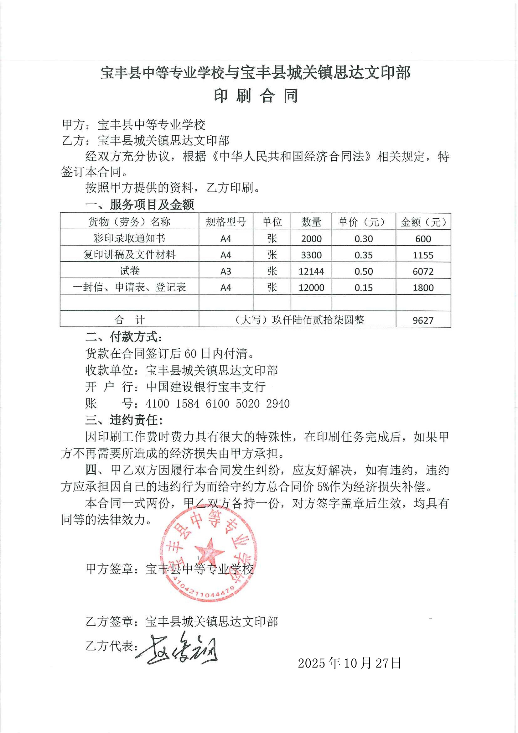 2.供应商(乙方):宝丰县城关镇思达文印部